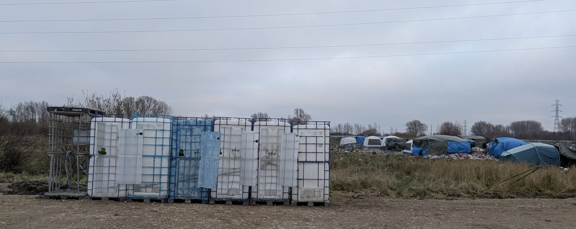 I spent a weekend volunteering with Roots run by my old friend Tom, an organisation supporting hundreds of people in Dunkirk. The brutality of the weather there was immediately apparent. The showers they had installed on a piece of wasteland — using upcycled IBC water tanks to create shower ‘cubicles’ — were unusable because the pipes had completely frozen. It felt painfully ironic: when people most needed a hot shower to thaw out, they couldn’t access one.